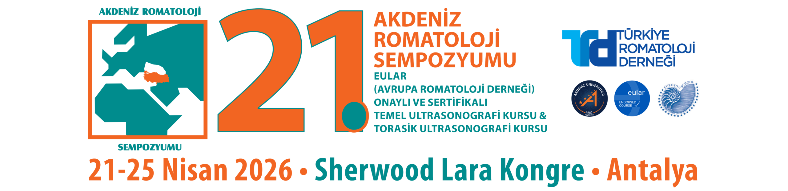 Türkiye Romatoloji Derneği tarafından düzenlenen, Akdeniz Üniversitesi İç Hastalıkları A. D. Romatoloji – İmmunoloji Bilim Dalı, Charite Üniversitesi Romatoloji ve Klinik İmmunoloji Bölümü tarafından desteklenen 21. Akdeniz Romatoloji Sempozyumu, Temel Ultrasonografi Kursu & Sistemik Romatizmal Hastalıklarda İnterstisyel Akciğer Hastalığı ve Torasik Ultrasonografi Kursu’nda sizleri davet etmekten mutluluk duyuyorum.